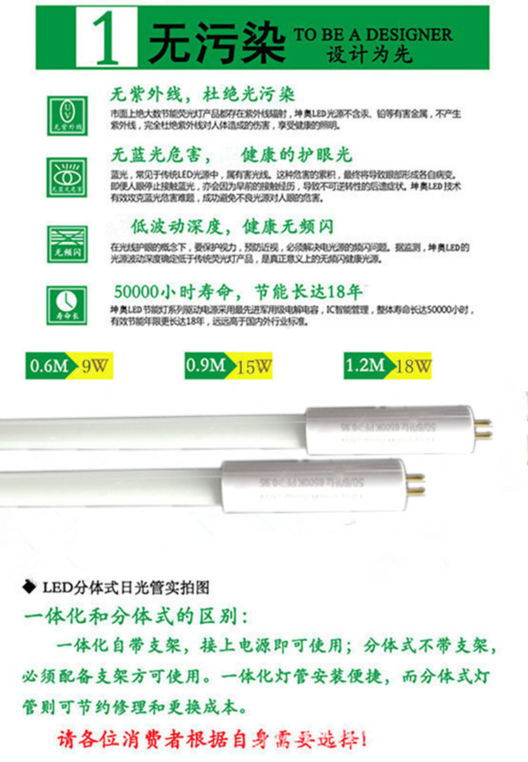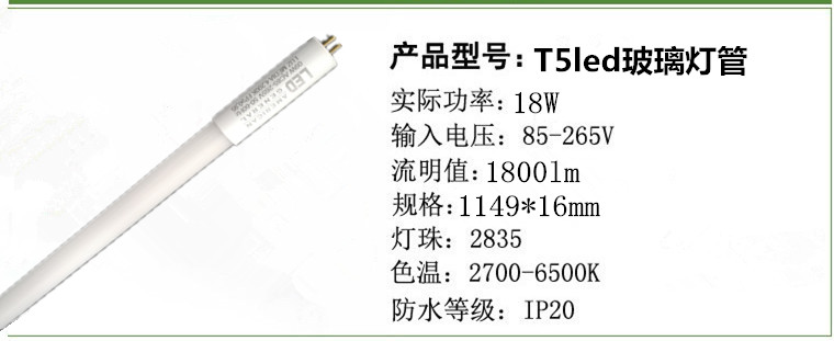 关键词:T5led玻璃灯管 T5led分体灯管1.2米